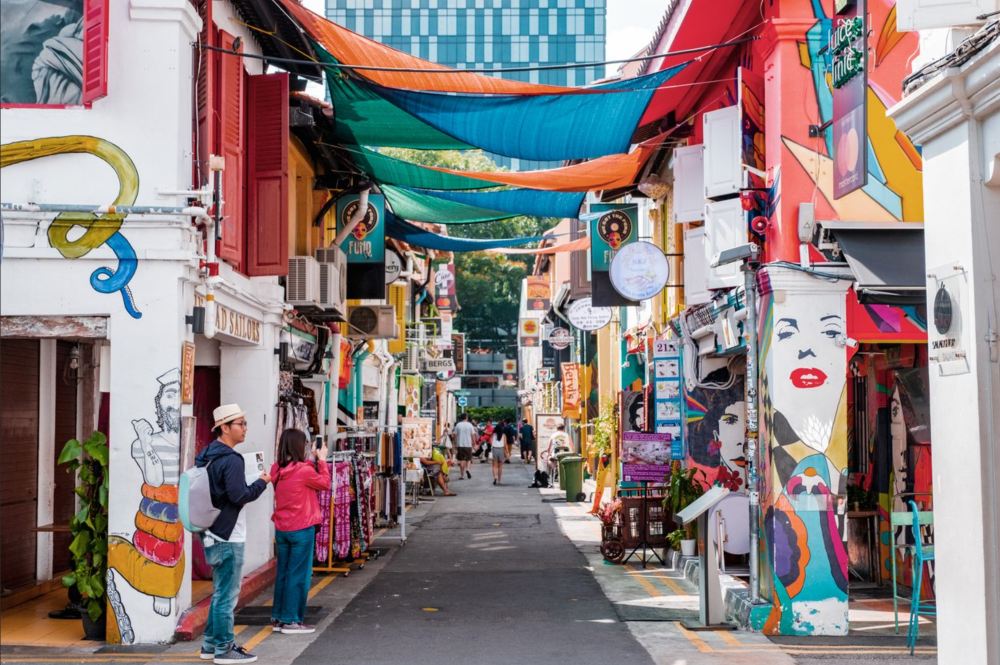▲ 哈芝巷:曾經是一條空蕩的街道,如今大批本土設計師和年輕創業者進駐,使其重獲新生。這裡有許多頗具個性的精品時裝店,出售各種具有新加坡本土風情的時尚配飾和物品。此外,哈芝巷的店鋪裝飾也別具特色,五彩繽紛的藝術塗鴉、3D牆繪等,吸引了眾多遊客前來拍照打卡。