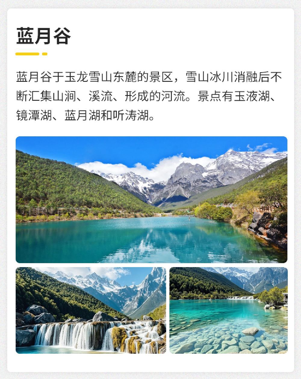 3、麗江古城及束河古鎮一帶的馬路邊接送,超出指定範圍,請自行前往上車點。行程時間、遊玩順序僅為預估參考,玉龍雪山同車不同組的索道時間各有不同,師傅會根據各位的索道時間合理調整遊玩順序,請各位嚴格按照自己的索道時間段乘坐索道。