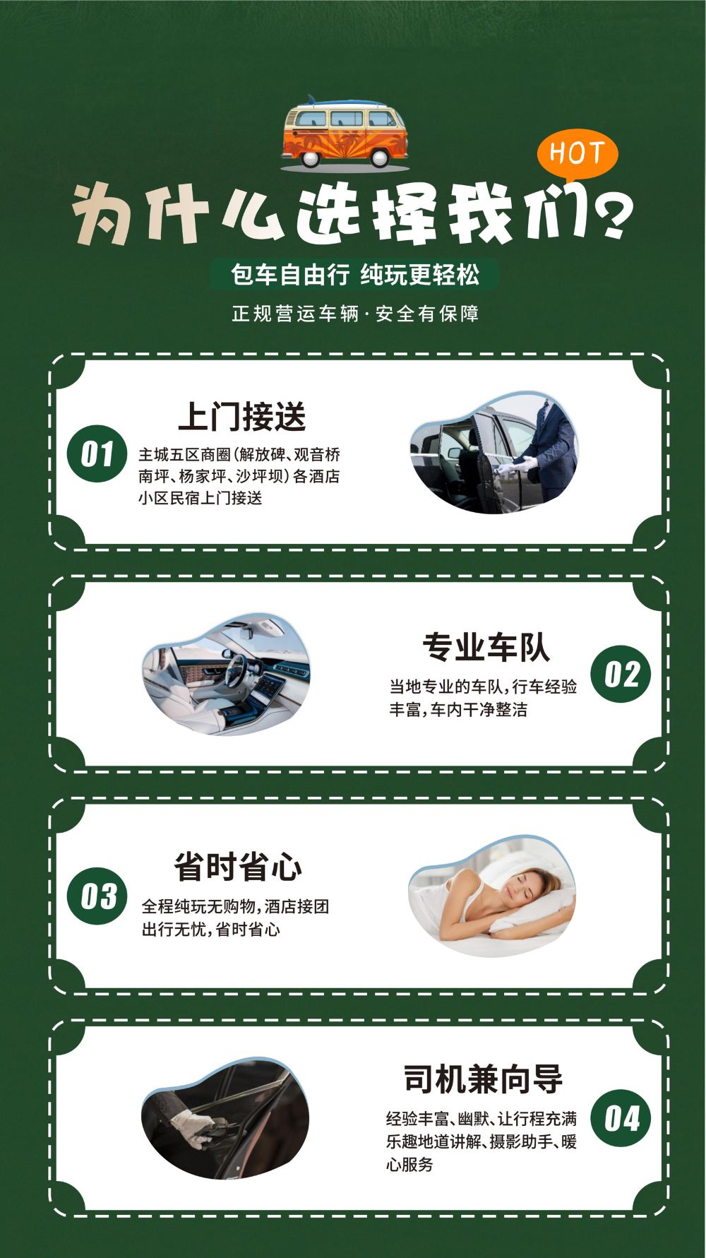 【品質保證】純玩無購物、透明消費、無套路、正規車隊安全保障。
