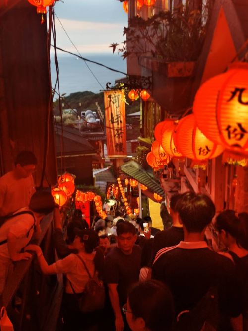 ▲ 九份主街:籠罩在暮色的魔幻之中。當夜幕降臨,燈籠亮起,九份彷彿化身為奇幻世界。紅光照亮石階,薄霧籠罩小鎮,為遊客營造出如夢似幻的景象。此時此刻,也是攝影愛好者的天堂。
