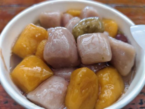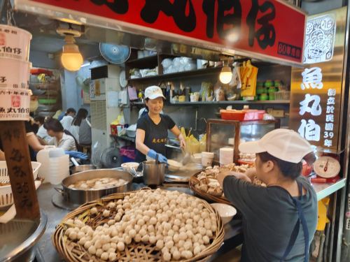 ▲ 魚丸湯和粉絲就能滿足你的胃口。 九份老街簡直是美食寶庫!這裡匯集了各種台灣傳統小吃,例如著名的芋圓、魚丸湯、肉丸和香茅年糕。如果你有點餓了,我們建議你邊走邊吃點小吃。