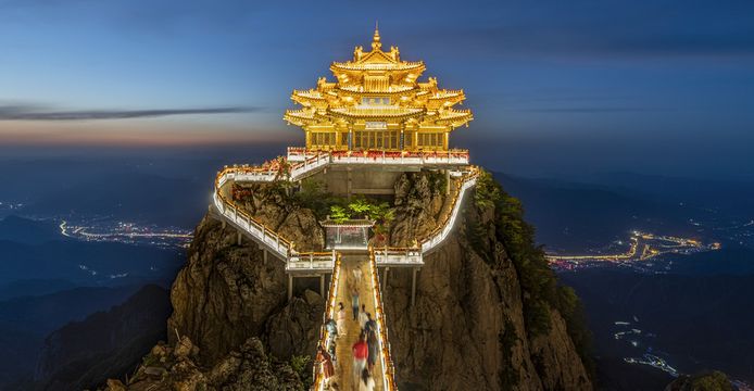 雲頂天宮現太虛幻境,十裡畫屏步移景換,金殿道觀沐紫氣東來。
