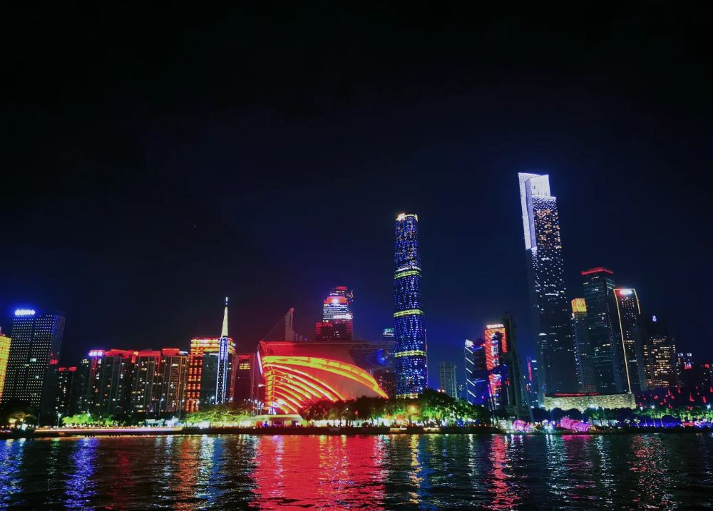 ▲ 首先映入眼簾的便是廣州塔——那座被稱為「小蠻腰」的地標,此刻正換上五彩的華服,燈光自上而下流轉