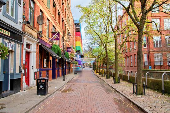 曼徹斯特最具活力的街區之一。傍晚時分,彩虹旗飄揚,運河燈光初上,氛圍獨特。可選擇一家特色酒吧小酌