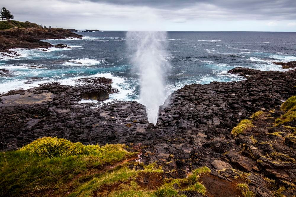 ▲ 近距離觀賞著名噴水洞。海浪沖入海蝕洞時,會噴出高達10米的水柱,震撼又壯觀。