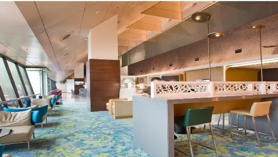 Enjoy the luxurious Plaza Premium Lounge service spanning 7,000 square meters in the departure hall of Singapore Changi Airport Terminal 1.