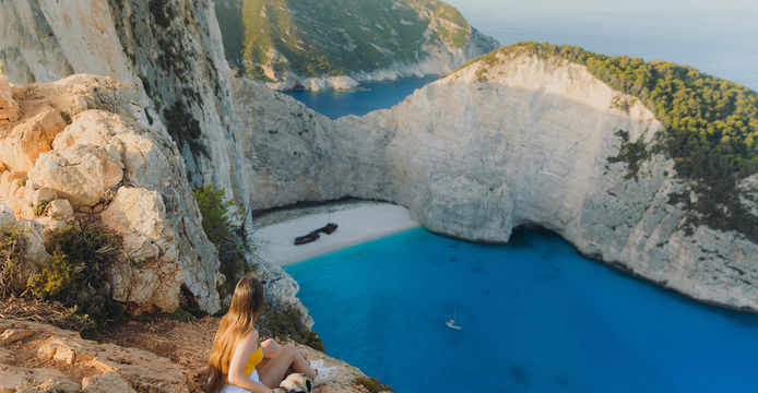 感受藍洞折射藍光的魅力,在著名的Navagio Shipwreck沉船前拍照