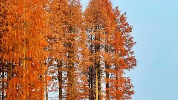 徒步嵊州更樓古道尋覓紅楓,賞水杉林美成水上調色盤