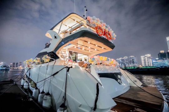 瀚鴻68尺豪華遊艇,是專為黃浦江定制的明星船。三層空間佈局宏偉,選用頂級材質與精湛工藝。全景落地窗將外灘風光盡收眼底,為您提供無與倫比的水上殿堂體驗。