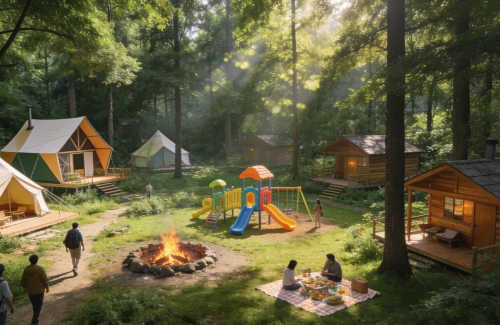 ▲ 北緯23°8森林營地,是一個天然大氧吧,有400畝的WOWO部落,遊客可以在這裡欣賞稻田風光,還能與萌寵親密互動。營地的蝸牛探索樂園、極速樂園等,有無動力設施和機動遊戲,適合不同年齡層的遊客遊玩。