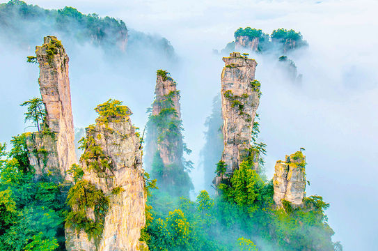 地貌獨特,景觀壯麗:擁有全球獨一無二的石英砂岩峰林峽谷地貌,三千座直插雲霄的石峰形態各異