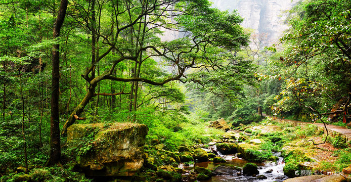 沿金鞭溪漫步,欣賞金鞭岩聳立、神鷹護鞭的壯麗景色,聆聽潺潺溪水聲,感受峽谷的清幽靜謐。