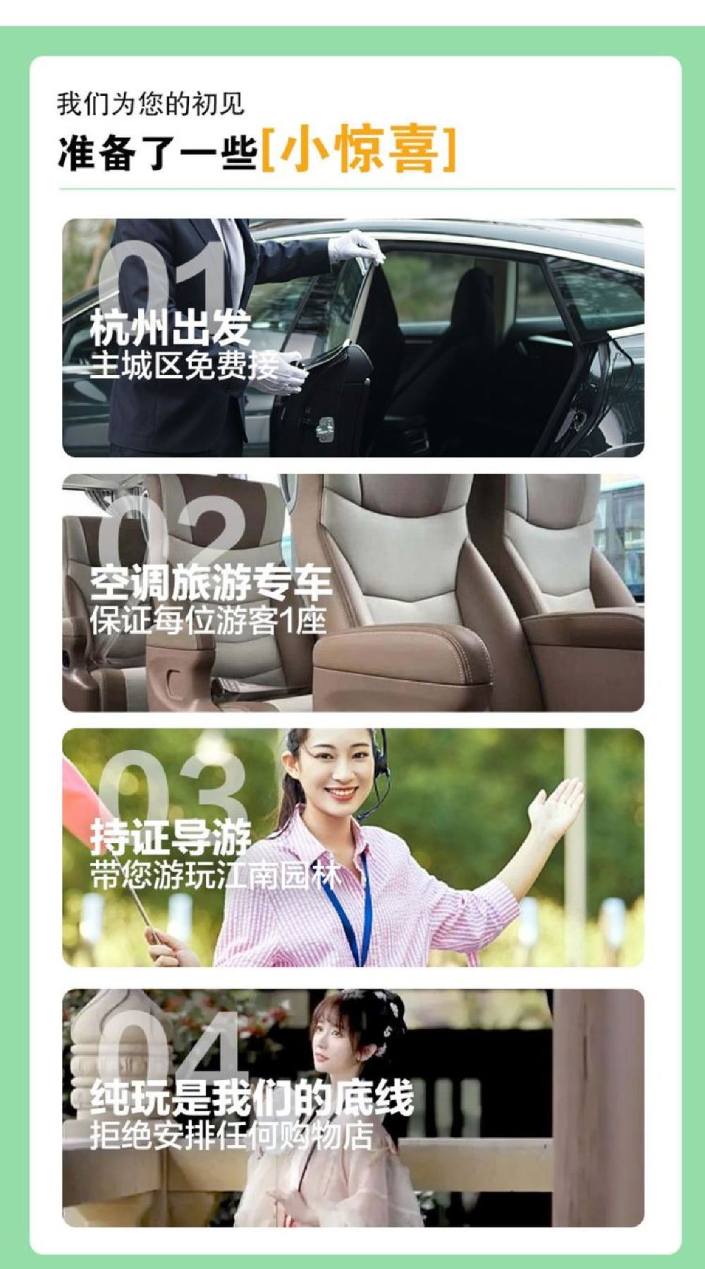 保證全程純玩,不進任何購物店,專心享受導遊服務,無需「鬥智鬥勇」,遊玩更加舒適。