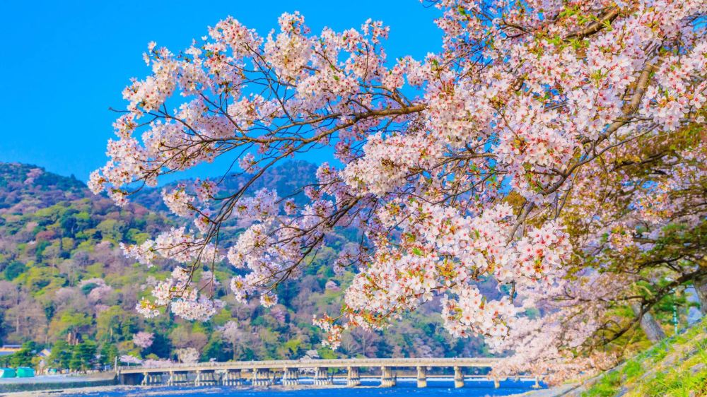 ▲ 【嵐山】 因可欣賞到許多風光明媚的景觀而成為熱門的一日遊觀光景點。除了像是橫跨於大堰川上的渡月橋、能令人陶醉於仙境氛圍中的竹林小徑及可盡享溪谷美景的遊覽小火車等景點、活動之外,外帶美食也很豐富充實。
