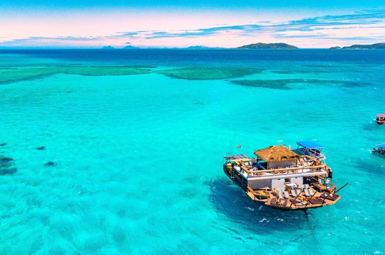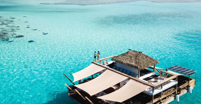 造訪斐濟首座獨一無二的雙層漂浮平台,四周環繞著碧藍海水與如畫美景