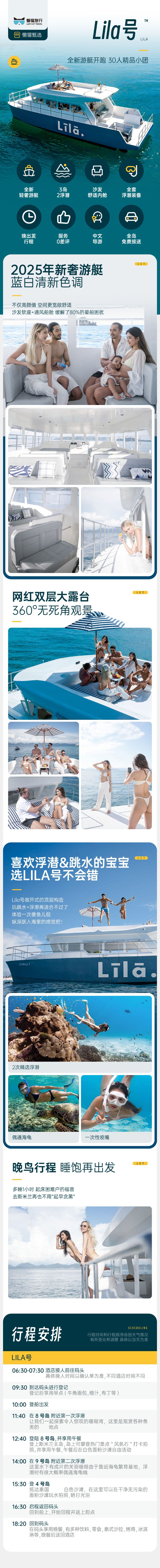 註:LILA號船家通知行程滿10人成團,若當天人數不足,客戶服務支援會提前1天聯繫您協調改期或取消。