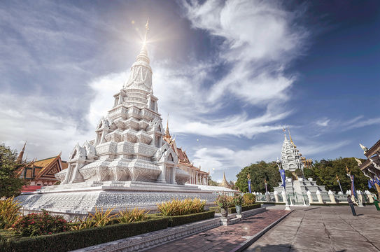 這座位於皇宮建築群內的佛塔,地面鋪設了超過5,000塊銀磚,並供奉著無價的佛像,其中包括一尊由翡翠水晶製成的佛像。