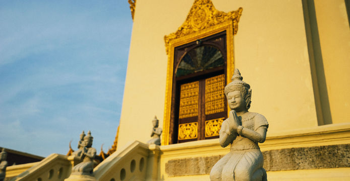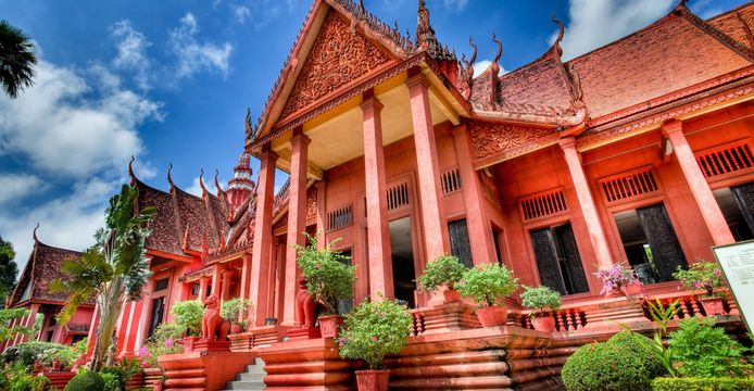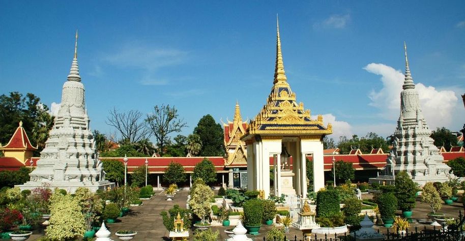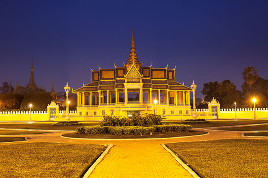 高棉建築的傑作,宮殿金碧輝煌的尖頂、華麗的大廳和修剪整齊的花園令人目眩神迷,至今仍是柬埔寨王室的居所。