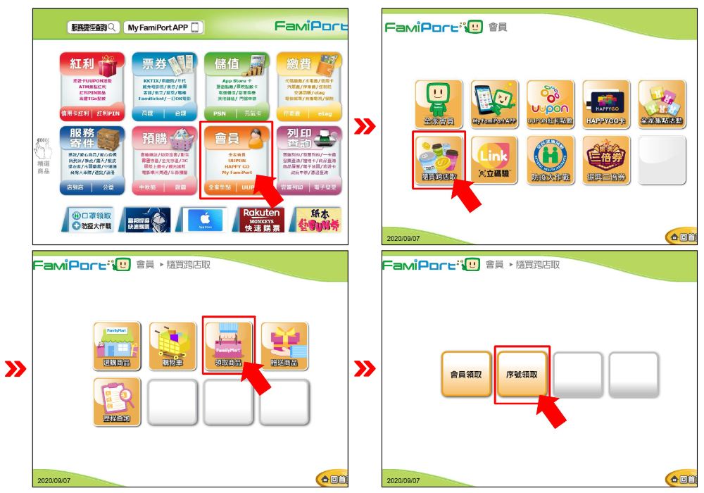 (1) 前往全家 FamiPort 點選【會員】【隨買跨店取】【領取商品】。