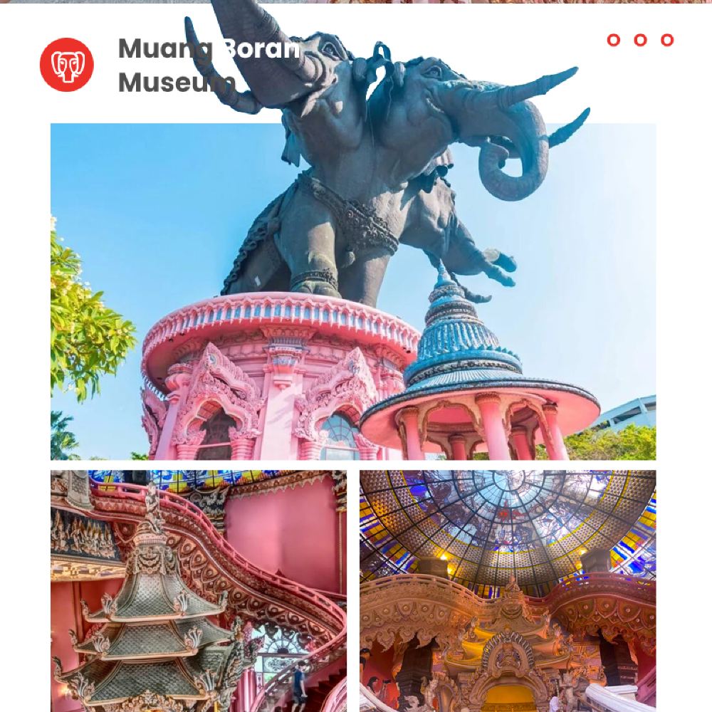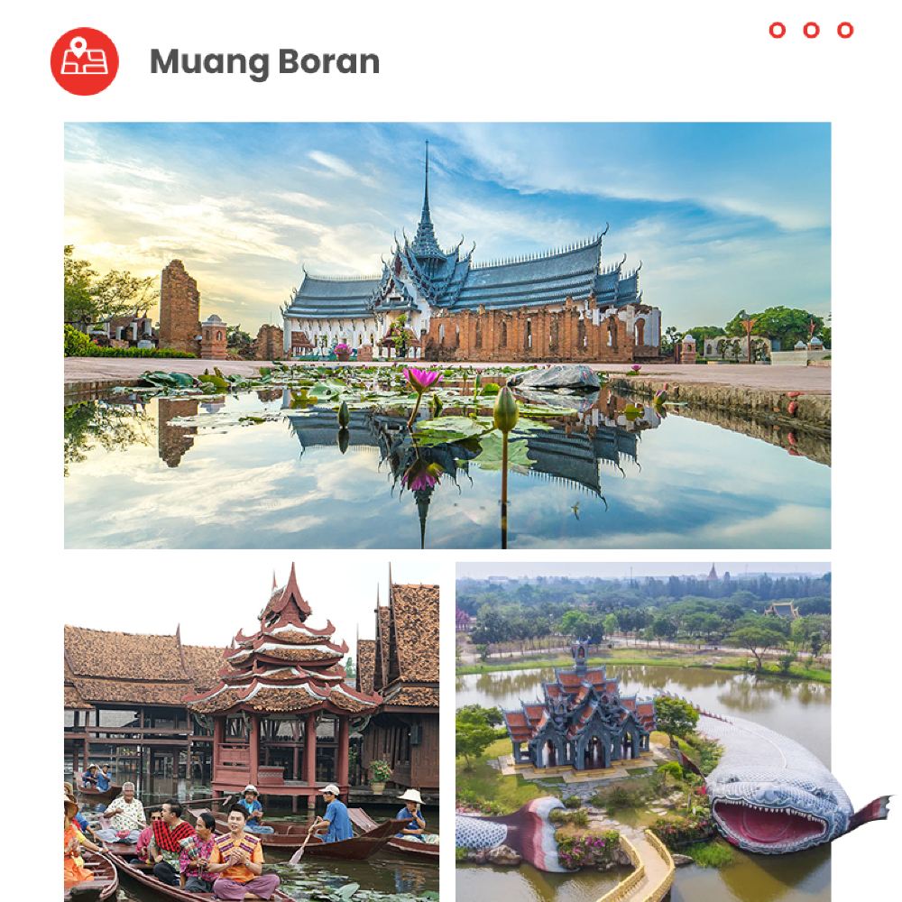 ●套餐E/F:丹嫩美功+三頭神象博物館/暹羅古城(含門票)(贈送1小時電動長尾船或30分鐘左右手划船包車體驗) 贈送飲料