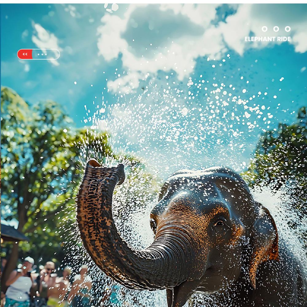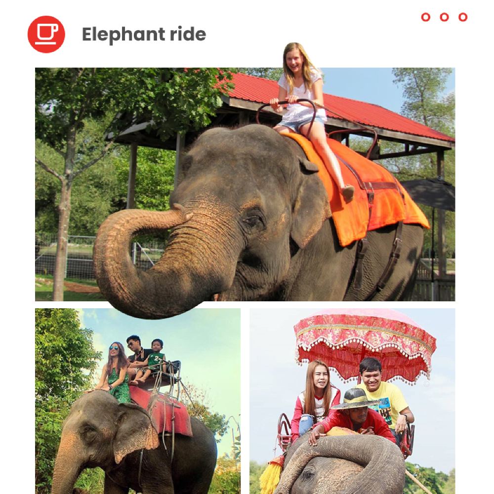 ●套餐C/D:丹嫩美功+騎大象10-15分鐘(贈送1小時電動長尾船或30分鐘左右手划船包船體驗) 贈送飲料