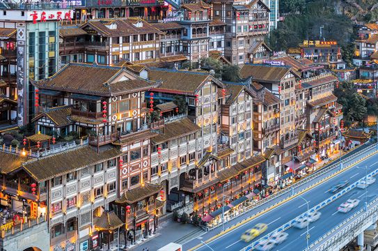 我們將從外部參觀洪崖洞民俗風貌區。