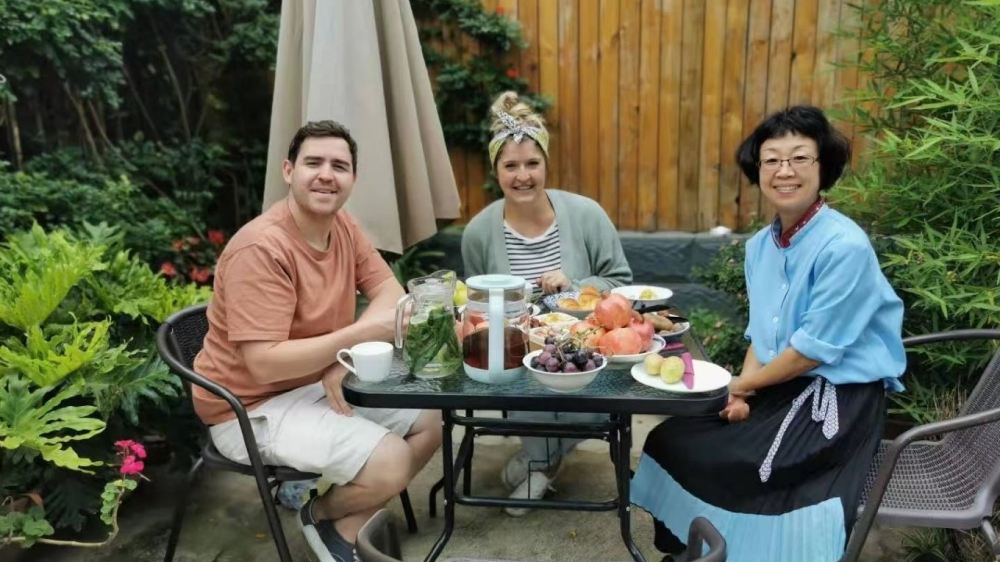 大約十二點的時候,大家開始午餐。我們會提供自家釀的桂花酒和麗江的特色飲品:海棠果茶。