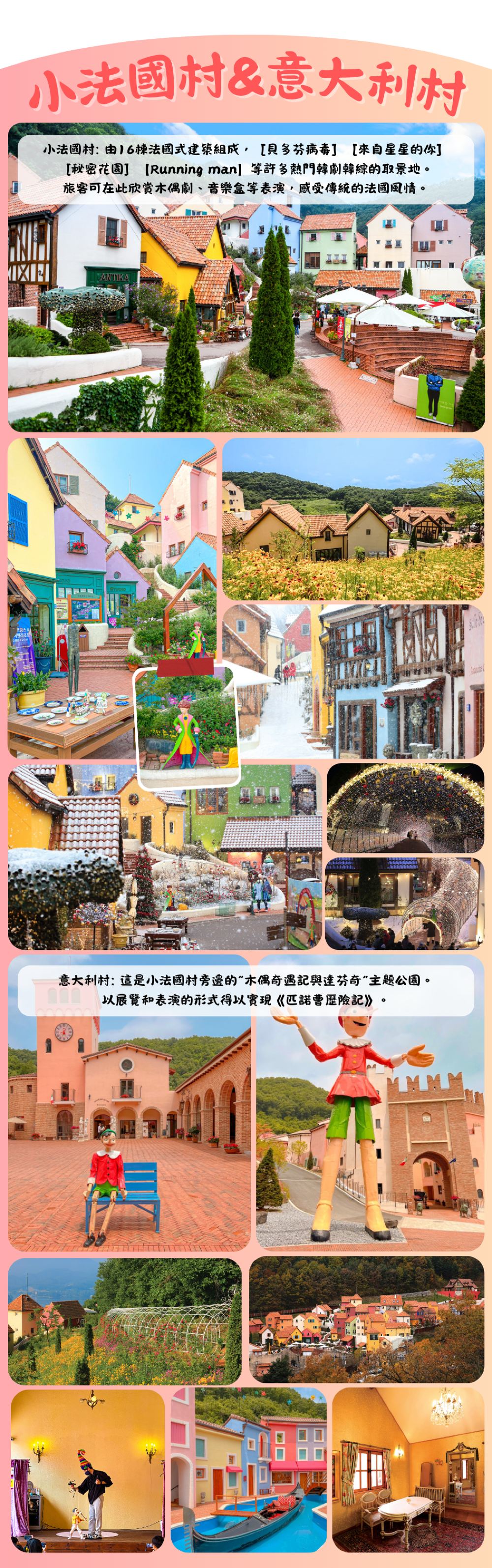 法式小村莊|漫遊小法國村16棟彩色建築,欣賞木偶劇與音樂盒表演,體驗多部韓劇綜藝的浪漫取景地。