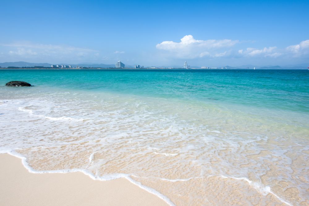 ▲ 蜈支洲島沙灘沙質細膩潔白,海水清澈湛藍,透明度高。海岸線曲折優美,是理想的日光浴、戲水勝地。