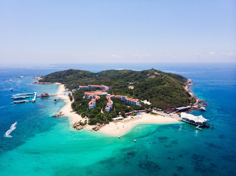 ▲ 蜈支洲島坐落於三亞海棠灣,有「中國的馬爾代夫」之稱。島上海水能見度高,沙白灘軟。水上項目豐富,還有媽祖廟等人文景觀。漫步其間,椰影婆娑,能盡享海島的浪漫與愜意。