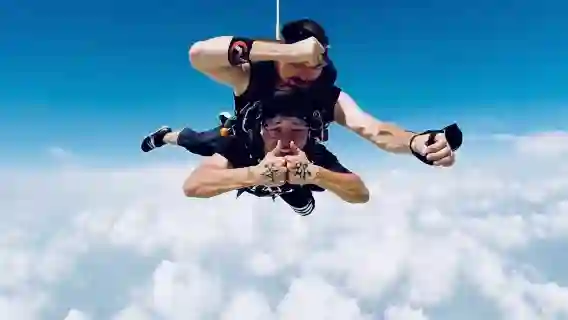 3300米的高空挑戰,飛機升空約10分鐘+自由落體時速200公里/時持續40~60秒左右+雙人開傘高度1500米左右+開傘後空中停留6-7分鐘!