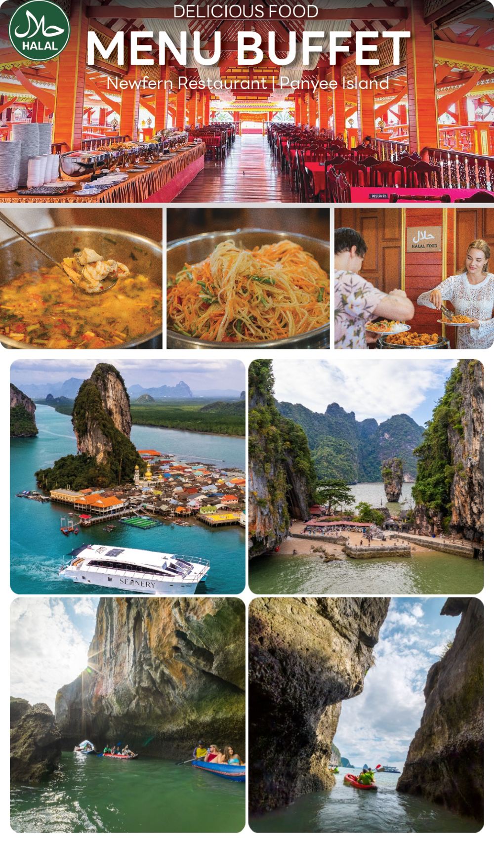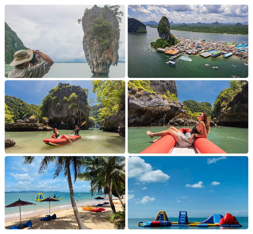 ▲ ●登上Panak島參觀美麗的岩洞(Mangrove cave或lce-cream cave)和潟湖 ●登上Khao Phing-kan島,和著名的007島拍照合影 ●在Panyi享用美味的午餐 ●前往Hong島,乘皮划艇探索隱秘的鐘乳石洞 ●16:00前往Yao島,在私人沙灘放鬆,或在水上漂浮樂園玩樂 ●17:30乘船回到碼頭,有工作人員安排上車送回酒店