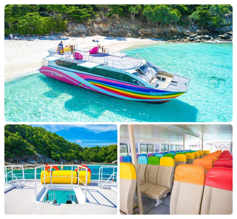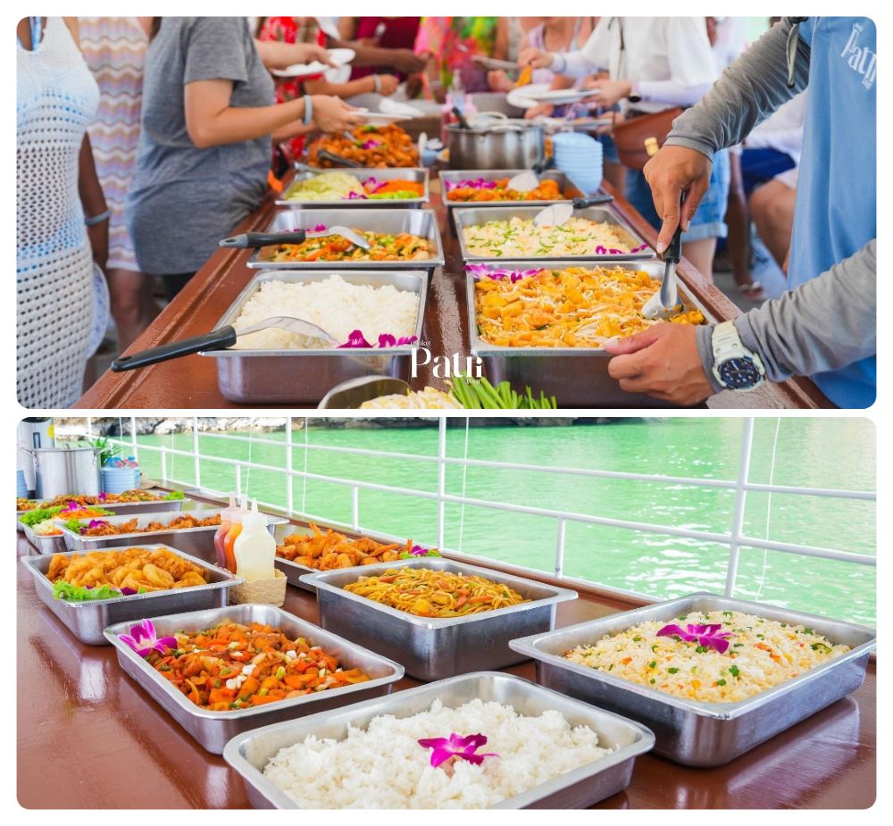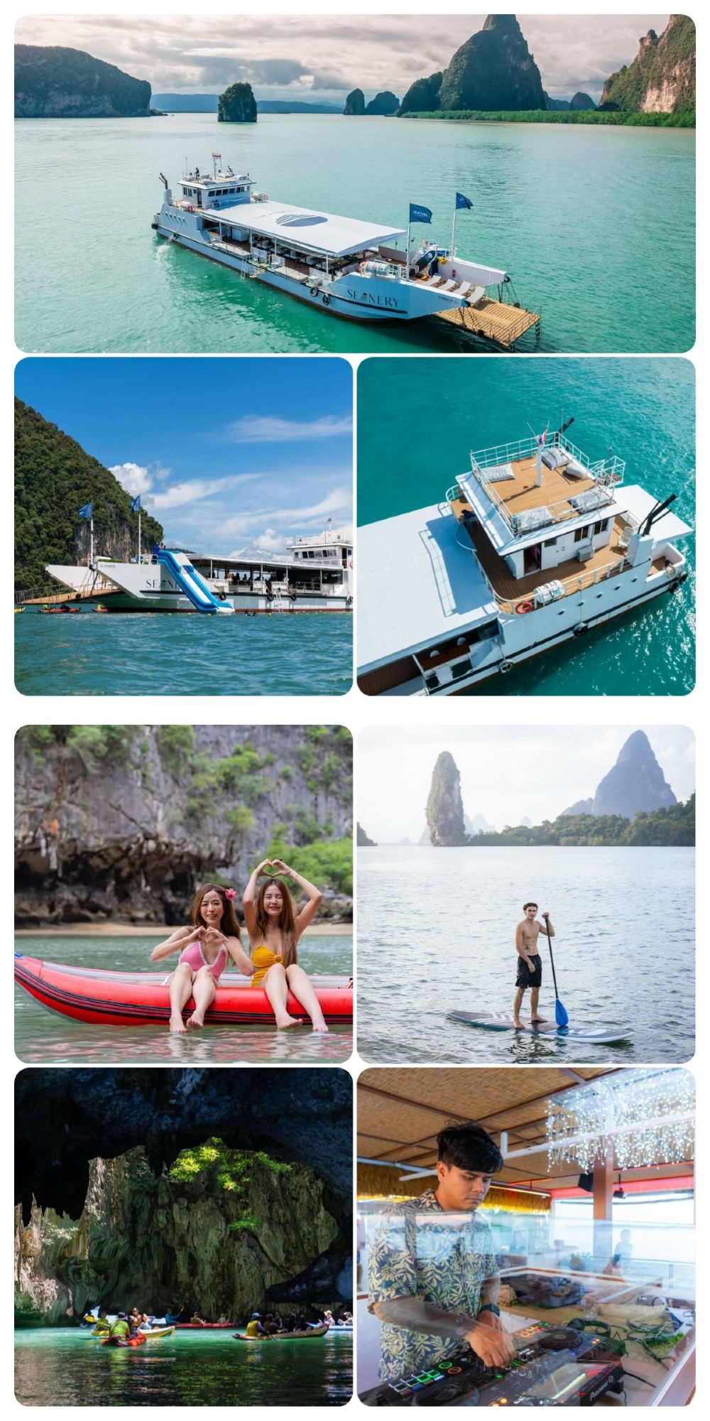 ▲ 10. 激情號遊船+DJ派對 Naka島水上活動+007島+皮划艇+DJ派對 ●8:30–10:00 在酒店接客人前往AO POR碼頭 ●11:30 登船並享用迎賓飲料 ●在Naka島附近水域,盡情享受水上活動的樂趣,游泳、水滑梯、充氣游泳池、槳板、浮水墊 ● 享用美味的泰式自助午餐(泰國、中國和日本料理),無限軟飲