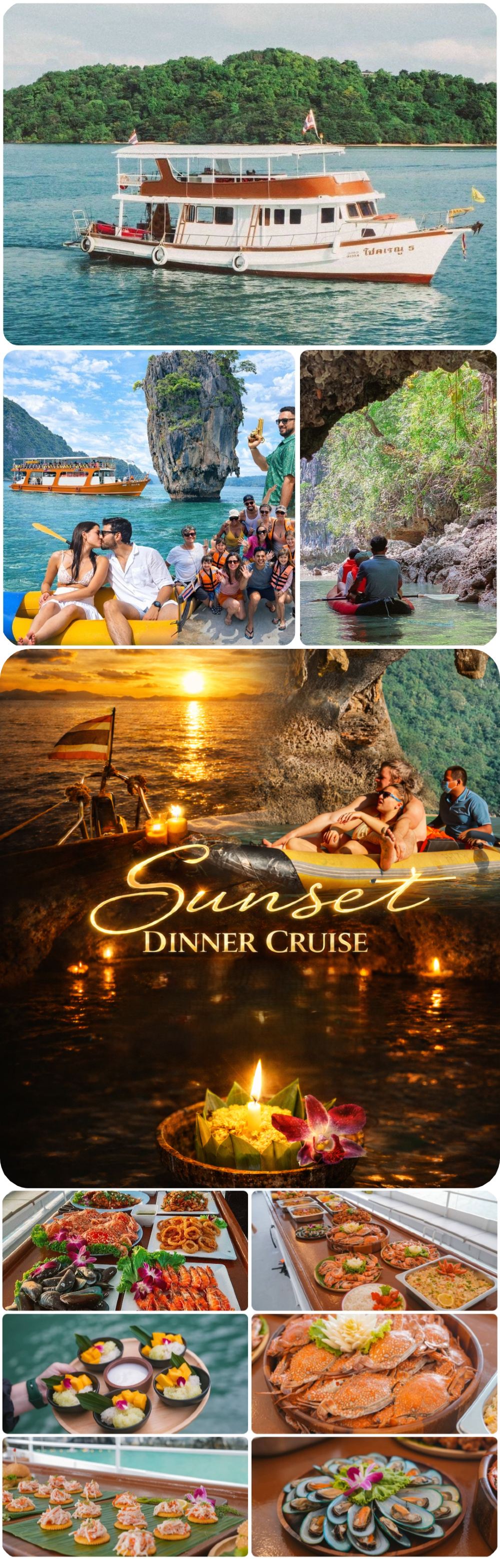 ▲ 8. 日落遊艇 007島+皮划艇+海鮮自助晚餐+賞日落 ●12:00左右 司機前往酒店接您 ●13:30 抵達碼頭,享用免費咖啡、茶和小食 ●14:00 登上遊艇品嚐為您準備的歡迎飲品,乘坐豪華遊艇前往攀牙灣
