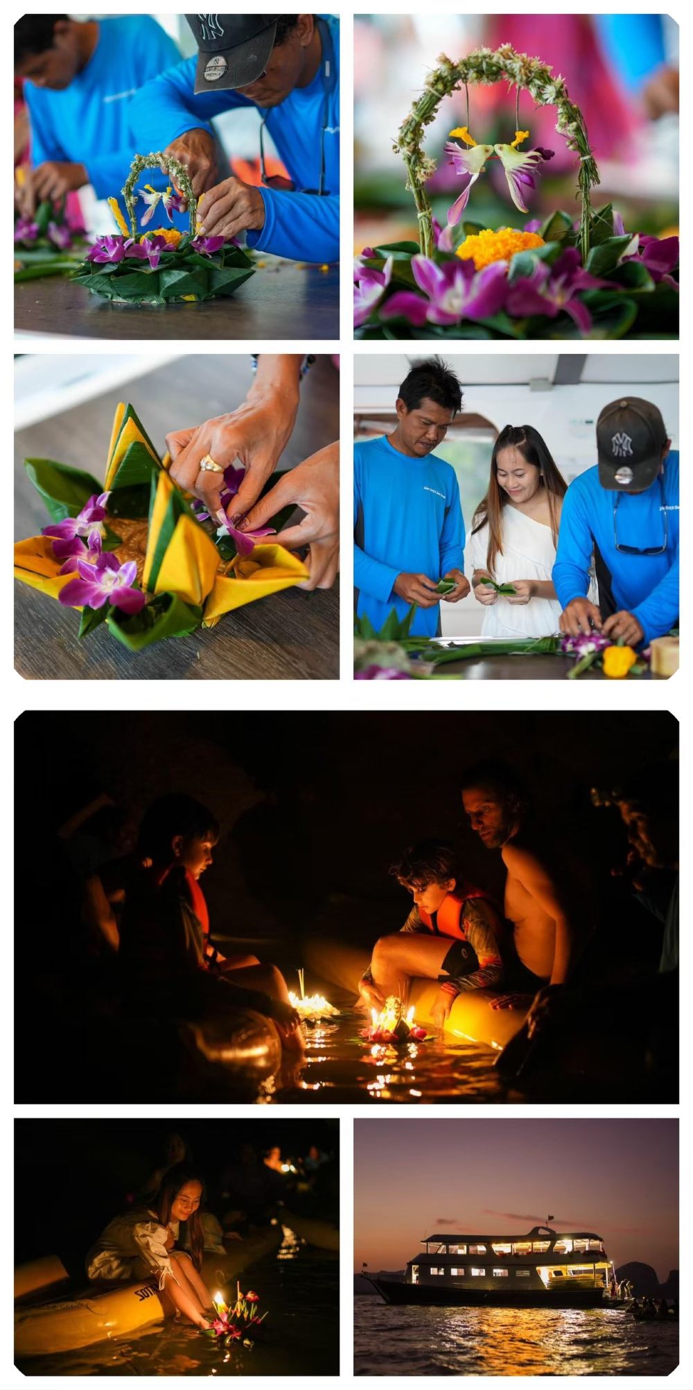 ▲ 11. Patri大船放水燈+海鮮晚餐+觀日落 ●12:00-13:30 司機前往酒店接您 ●14:00 到達碼頭,為您準備了咖啡、茶、小食 ●14:30 乘船前往攀牙灣,欣賞海上風光 ●15:30 在Hong島划皮划艇探秘,觀賞海上洞穴和紅樹林 ●16:30 製作水燈,在Panak島划皮划艇,放水燈 ●17:30 享用海鮮晚餐,欣賞攀牙灣美麗的日落景觀 ●19:00 返回碼頭送回酒店