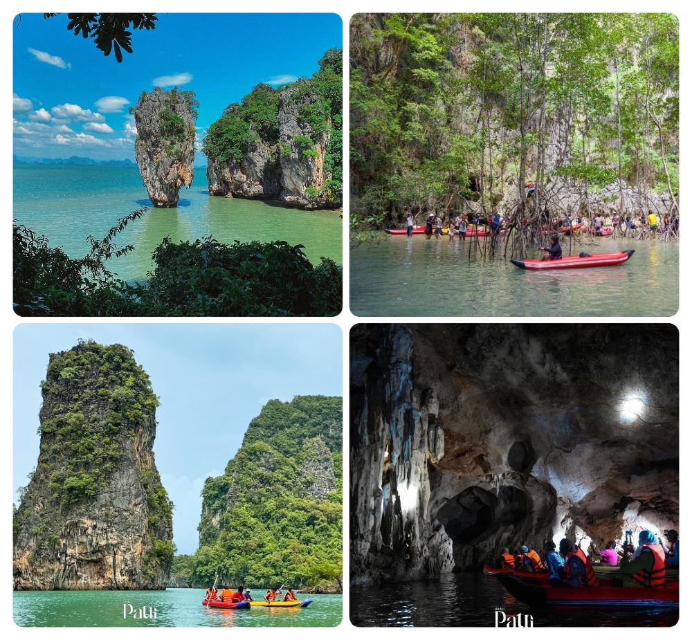 ▲ ●抵達Panka島,探索島上洞穴,皮划艇遊覽蝙蝠洞 ●皮划艇遊覽Hong島的洞穴 ●船上享用午餐(清真) ●Lana島游泳、玩水、皮划艇 ●登上Khao Phing-kan島,和著名的007島拍照合影 ●17:00回到碼頭、送回酒店