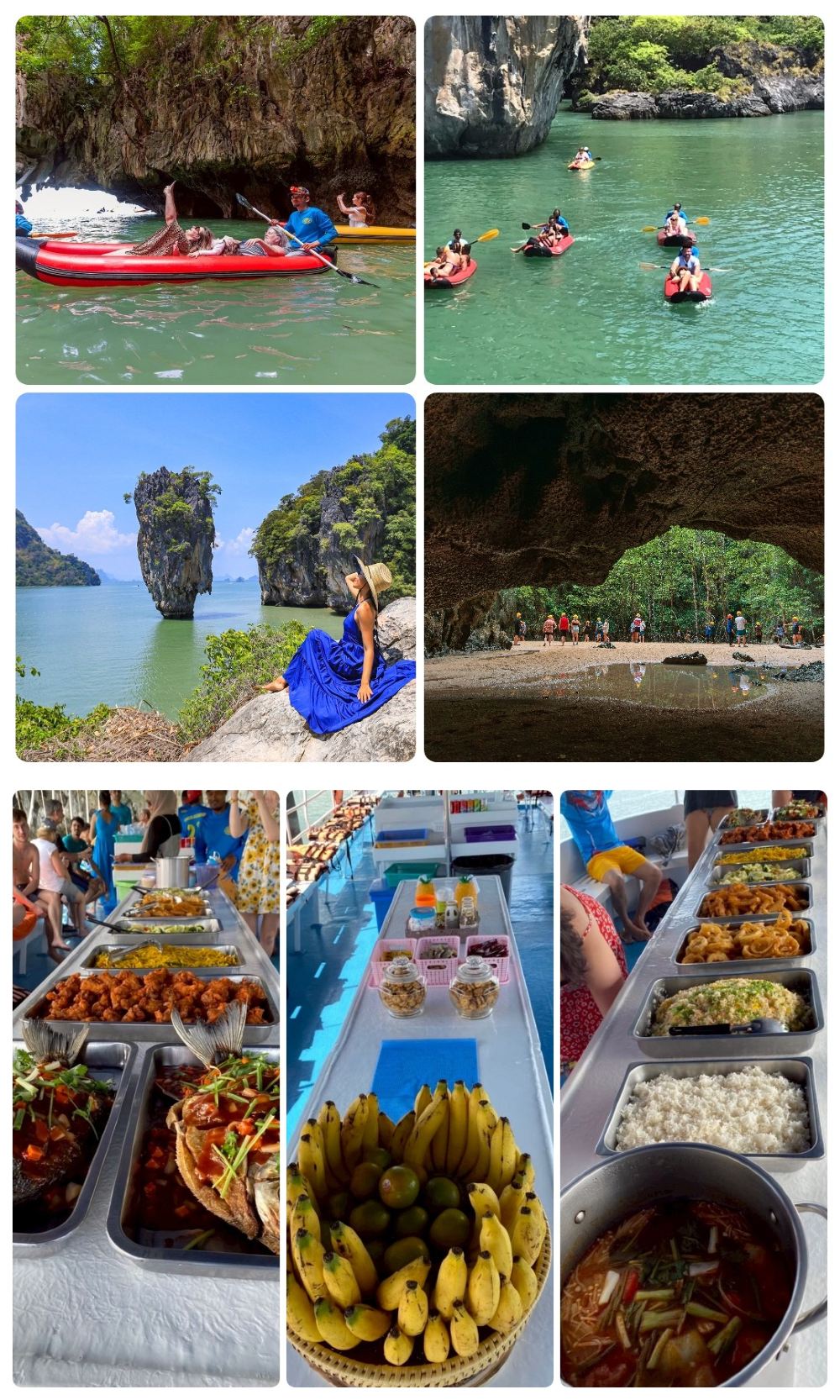 ▲ 7. 海精靈大木船 兩次皮划艇+007島 ●8:00左右到您下榻的酒店接您前往AO POR碼頭,享用早茶(咖啡,點心,熱飲等) ●9:45 乘坐大船前往攀牙灣國家公園