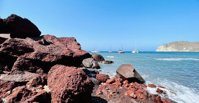 在紅沙灘附近海域最後一次游泳停泊。如選擇下午出發的航次,您將有機會在返航時欣賞到著名的伊亞落日美景。