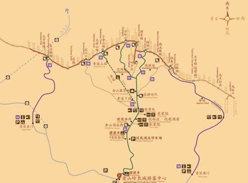 3.【4小時】長城必看。從中門進入——沿著步行道走——到磚垛子,從中磚垛子開始向東徒步【東五眼樓】,參觀結束後,從【東五眼樓】沿著遊客步道到景區東門,然後乘坐擺渡車返回中門。