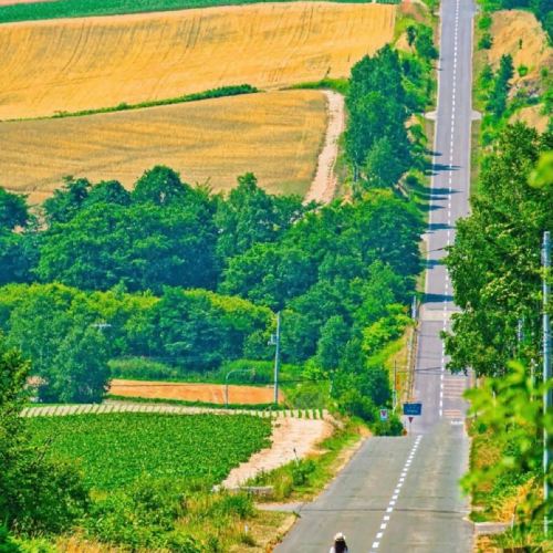 ▲ 車覽雲霄飛車之路 位於北海道上富良野町西11線,是一條因起伏劇烈、宛如雲霄飛車般而得名的風景道路,長度約2.5~4公里。沿路兩旁被遼闊的田園丘陵環繞,登高處還能遠眺壯麗的十勝岳連峰,被選為「上富良野八景」之一