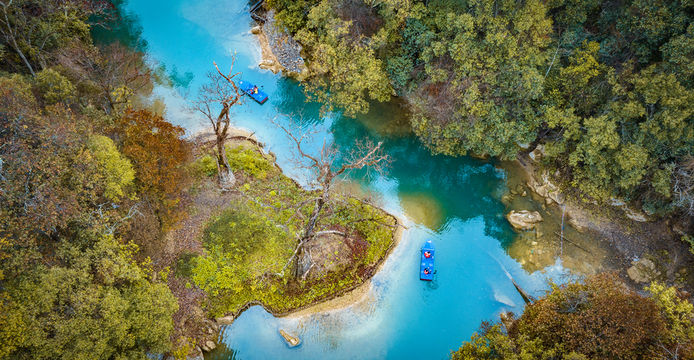 小七孔鴛鴦湖由大小湖相連,是喀斯特高原湖,湖水多彩,水道如迷宮,四周濃蔭,景觀美,充滿浪漫奇幻色彩