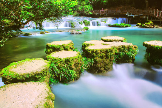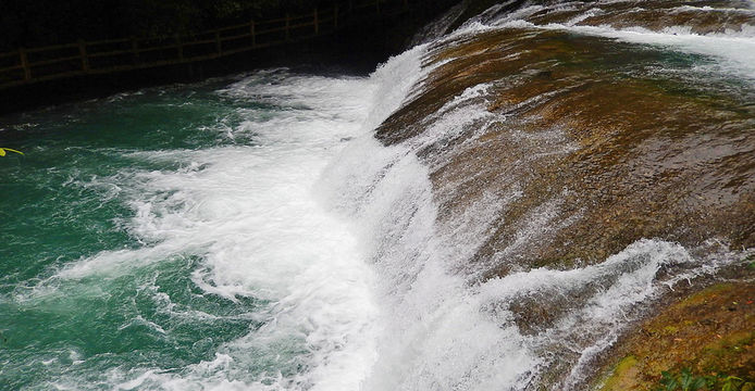 六十八級跌水瀑布位於小七孔景區涵碧潭上游,1.6公里山谷內錯落68級瀑布跌水,形態各異,景色壯觀。