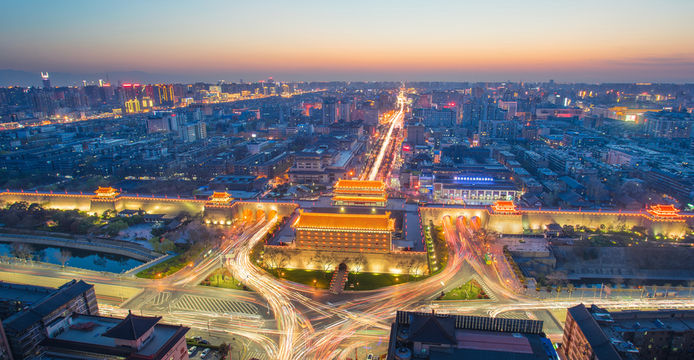 觀中國現存規模宏大、保存完整的古代城垣西安城牆俯瞰西安城