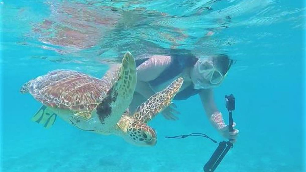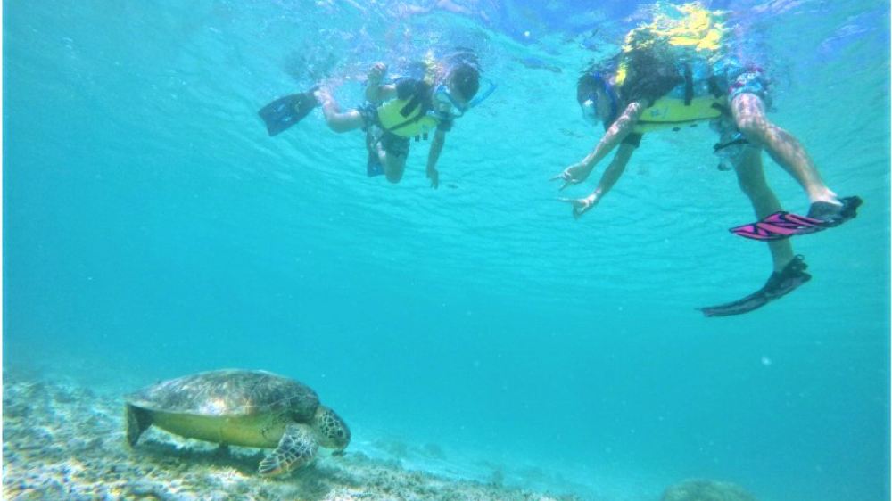 擁有果凍藍海水和白色沙灘延伸眼前,海灘浮潛90%以上都可以見到海龜