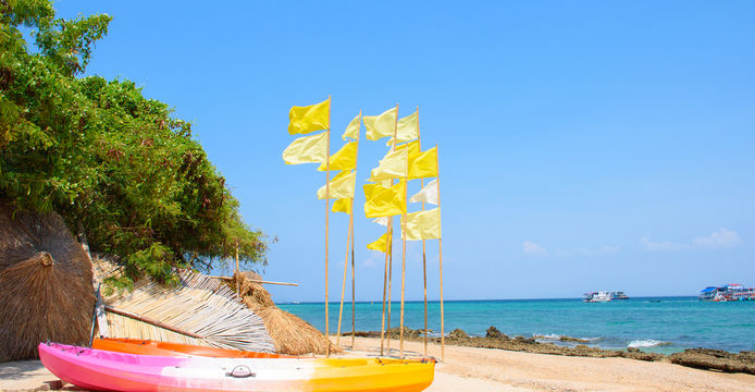 閣蘭島是芭堤雅著名的離島,擁有環繞全島的優質沙灘與清澈碧藍的海水。島上植被茂密,充滿熱帶風情。遊客可以在此體驗豐富的水上活動,如浮潛、香蕉船等,觀賞斑斕的海底世界。島上設施便利,有餐飲和購物點。從芭堤雅碼頭乘船約30-45分鐘即可抵達,是享受陽光海灘和休閒假期的熱門一日遊目的地。