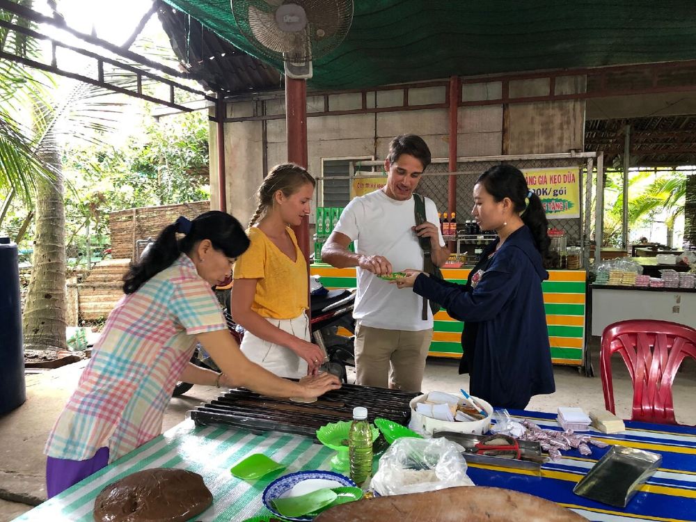 乘坐摩托艇及舢舨漫遊湄公河椰子運河,並參觀蜂蜜農場及椰子糖傳統工場