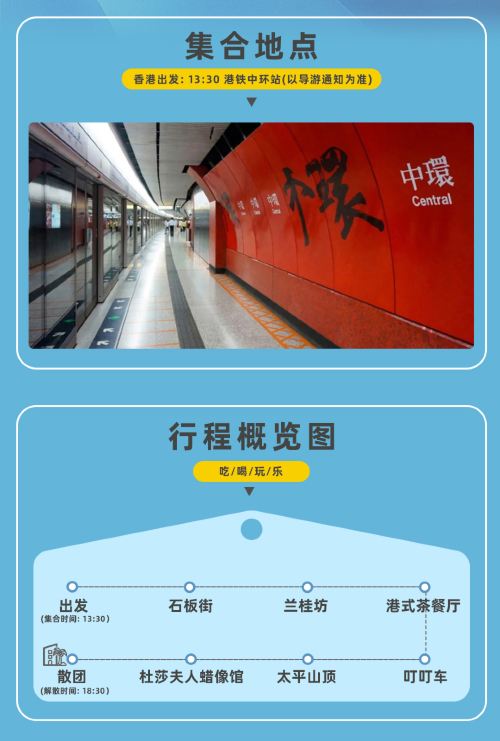 含石板街+蘭桂坊+港式下午茶+叮叮車體驗+太平山頂纜車(來回)+杜莎夫人蠟像館入場門票+香港本地持證導遊服務