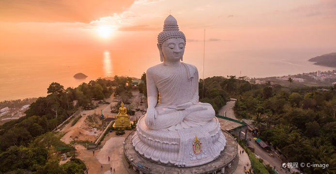 普吉山頂大佛坐東朝海,俯瞰攀牙灣,感悟佛教智慧與人生哲理。因雨季封閉,敬請諒解。