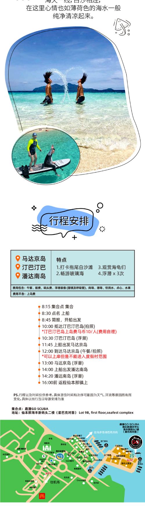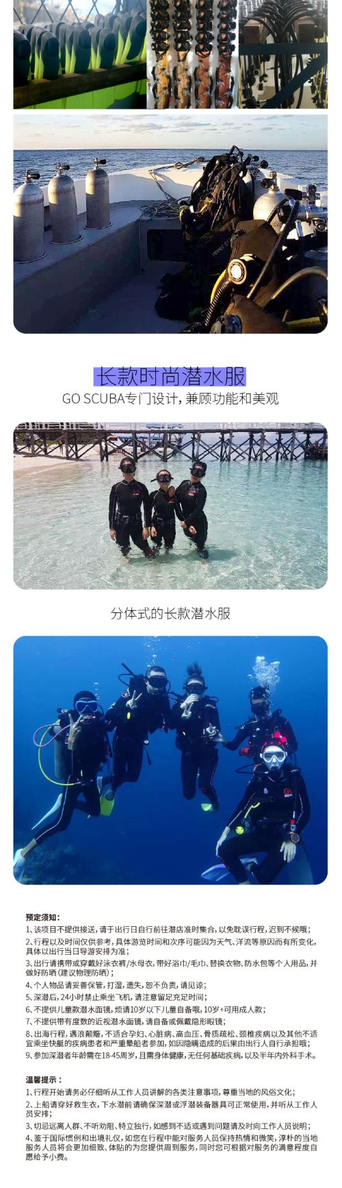 1、該項目不提供接送服務,請於出行日自行前往潛水店準時集合,以免耽誤行程,遲到不候哦;