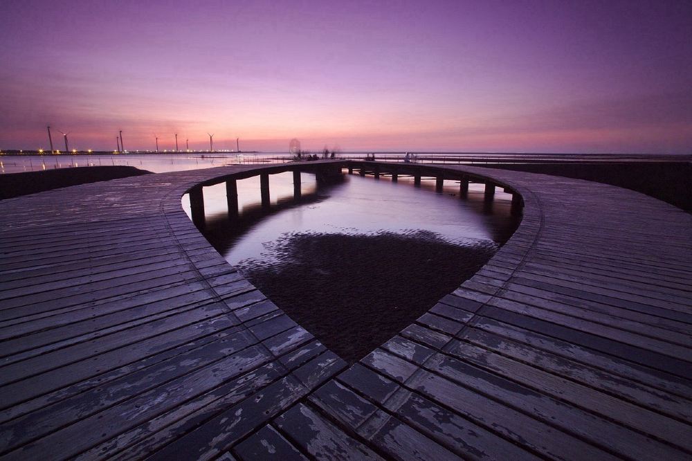 ▲ 原名為高美野生動物保護區,位於清水大甲溪出海口南側,面積廣達1,500公頃,擁有豐富的生態及景觀資源,無論從任何角度或鏡頭觀賞,橘紅色的夕陽搭配著遠方巨大的風車,都彷彿置身圖畫般,是不容錯過的經典美景